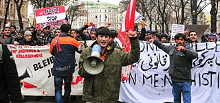 einem Marsch von Traiskirchen nach Wien beginnen am