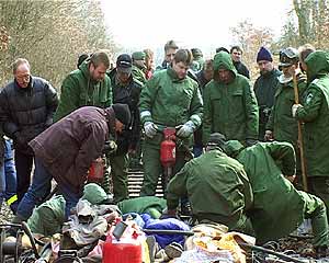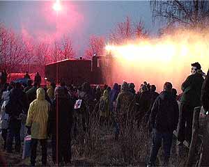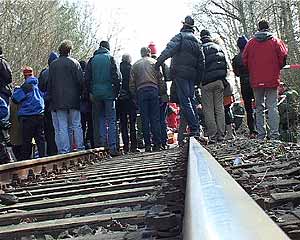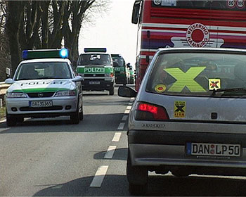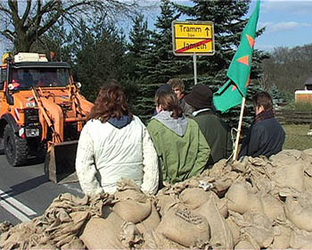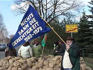 X-Tage gegen den CastorPhantasie contra StaatsgewaltDie Bahn fährt rückwärts. Einsatzkräfte rutschen im Schlamm aus. Innenminister Otto Kanther ist umzingelt von säureverspritzenden Chaoten. Die Grünen trauen sich nicht mehr so recht in ihre einstige Hochburg. Der Erlebniswert des Castor-Transports war ausgesprochen hoch, die Einschaltquoten bei TV und Internet entsprechend. Und überhaupt: Pech gehabt, wer dieser Tage nicht im Wendland weilte. Der Castor-Sixpack ist im Kasten. Friede seiner Asche. Nun setzen die Offiziellen ihre ernsteste Miene auf und, -wichtig wichtig-, es werden Bilanzen präsentiert. Der Bundesinnenmimister schwadroniert von "robusten Maßnahmen" gegen Rechtsbrecher. Die CSU will gleich mal Robin Wood und Greenpeace die Gemeinnützigkeit aberkennen. Grundtenor: Alle Gestörten in die Tonne! Die Transporte gehen weiter! Die Gegenbilanz ist einfach: Der Atomkonsens ist am Ende, der Widerstand erfreut sich allgemeiner Beliebtheit. Politisch war es für sie eine Niederlage, weil man aus sechszehnjährigen Robin-Wood-AktivistInnen nun mal einfach keine Schwerverbrecher machen kann; praktisch, weil die Vielfalt des Widerstands nicht einmal mit 20 000 Einsatzkräften kontrolierbar war. Die Halbwertzeit von Politikersprüchen liegt im Promille-Bereich gemessen an der Halbwertzeit von Plutonium. Die beträgt 24.400 Jahre. Wer diese Dimension begreift, versteht die Weisheit, die auf einem Ortsschild im Wendland ausgesprochen wird: "Wenn ihr das Leben nicht achtet - achten wir eure Gesetze nicht." Die Wendlandcrew des Umbruch-Bildarchivs |